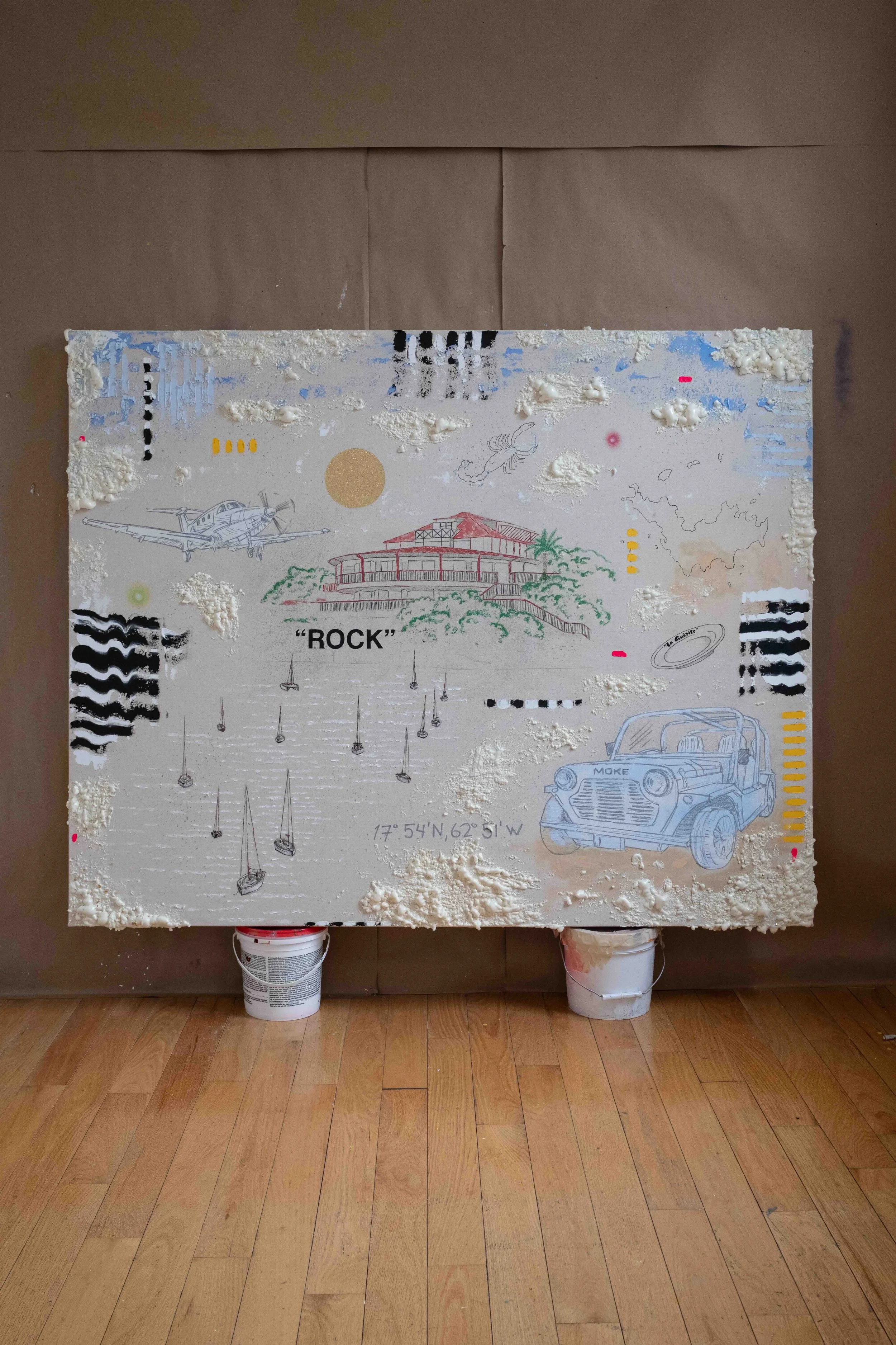 SOLD. Eden Rock, Mixed Media on Canvas, 60" x 48"